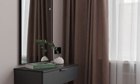Кровать с высоким мягким изголовьем оборудована подъемным механизмом, позволяющим с удобством использовать место под кроватью в качестве дополнительной зоны хранения, установлен кондиционер. Гардеробная позволит свободно разместить одежду и обувь, а также выделить хозяйственную зону для пылесоса, гладильной доски, чемоданов и других крупногабаритных предметов.